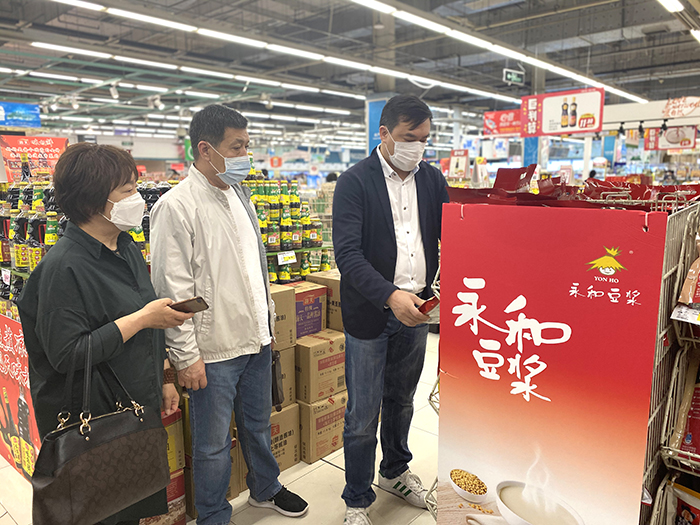 在林建雄董事長的帶領(lǐng)下,考察團隊一行人親臨市場,考察當(dāng)?shù)厣坛匿N售情況,并與經(jīng)銷商深切交談,聽取各地的反饋與建議。林董表示:永和豆?jié){關(guān)心市場發(fā)展,也深刻了解各地經(jīng)銷商的壓力。在接下來的發(fā)展中永和豆?jié){將繼續(xù)貫徹落實減負減壓政策,加大市場支持力度,幫助經(jīng)銷商調(diào)整市場營銷策略,解決困境。同時企業(yè)也將立足自身品牌與產(chǎn)品的現(xiàn)有優(yōu)勢,拓寬推廣傳播渠道,擴大企業(yè)影響力,開發(fā)新產(chǎn)品,提高企業(yè)產(chǎn)品的附加價值!“永遠的朋友,和樂的家庭”,永和豆?jié){將與經(jīng)銷商合作伙伴們站在一起,共同應(yīng)對這場疫情下的“大考驗”。