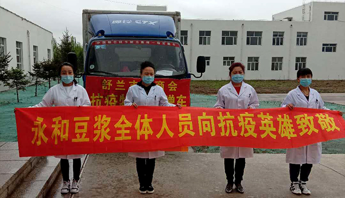 疫情爆發(fā)后,人們對于健康產(chǎn)品的消費逐漸升級,對于提高免疫力的產(chǎn)品越來越重視。永和豆?jié){在植物蛋白飲料行業(yè)38年,始終專注為消費者提供健康安全的產(chǎn)品,此次捐贈,也是把愛心傳遞,為健康續(xù)航!捐贈有價,情誼無價,永和食品公司將與舒蘭市攜手同心、并肩作戰(zhàn),堅決打贏疫情防控阻擊戰(zhàn)!